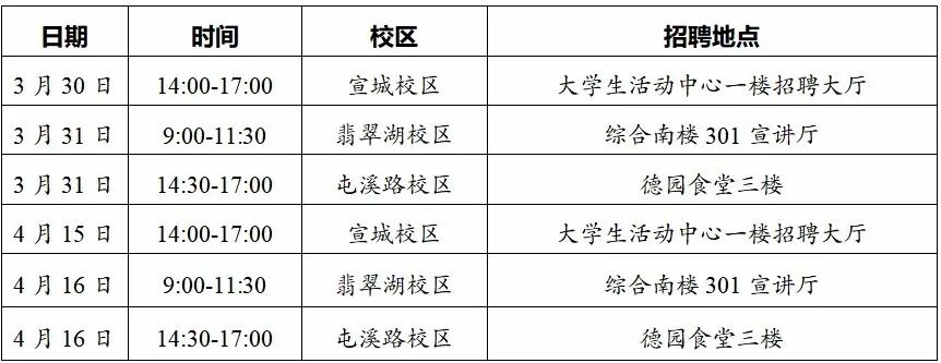 4.面试场地预约以及其他未尽事宜请联系学生就业指导中心用人单位服务室(屯溪路校区、翡翠湖校区参会单位)或宣城校区招生就业办公室(宣城校区参会单位)。